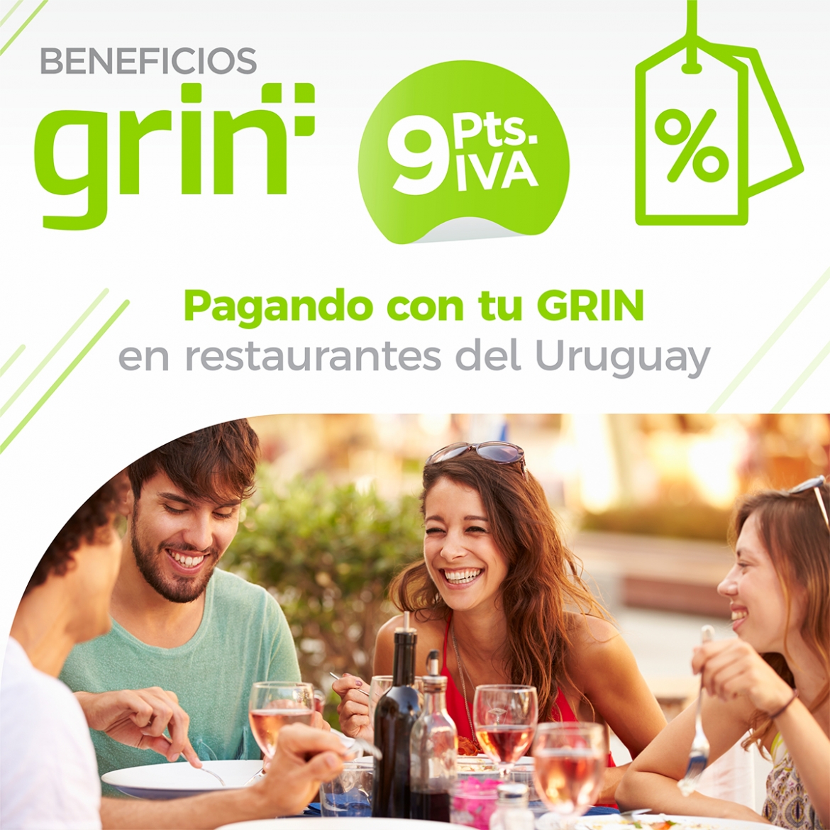 Pagando con tu Grin, ¡ahorrarás 9 puntos de IVA en los restaurantes de Uruguay!