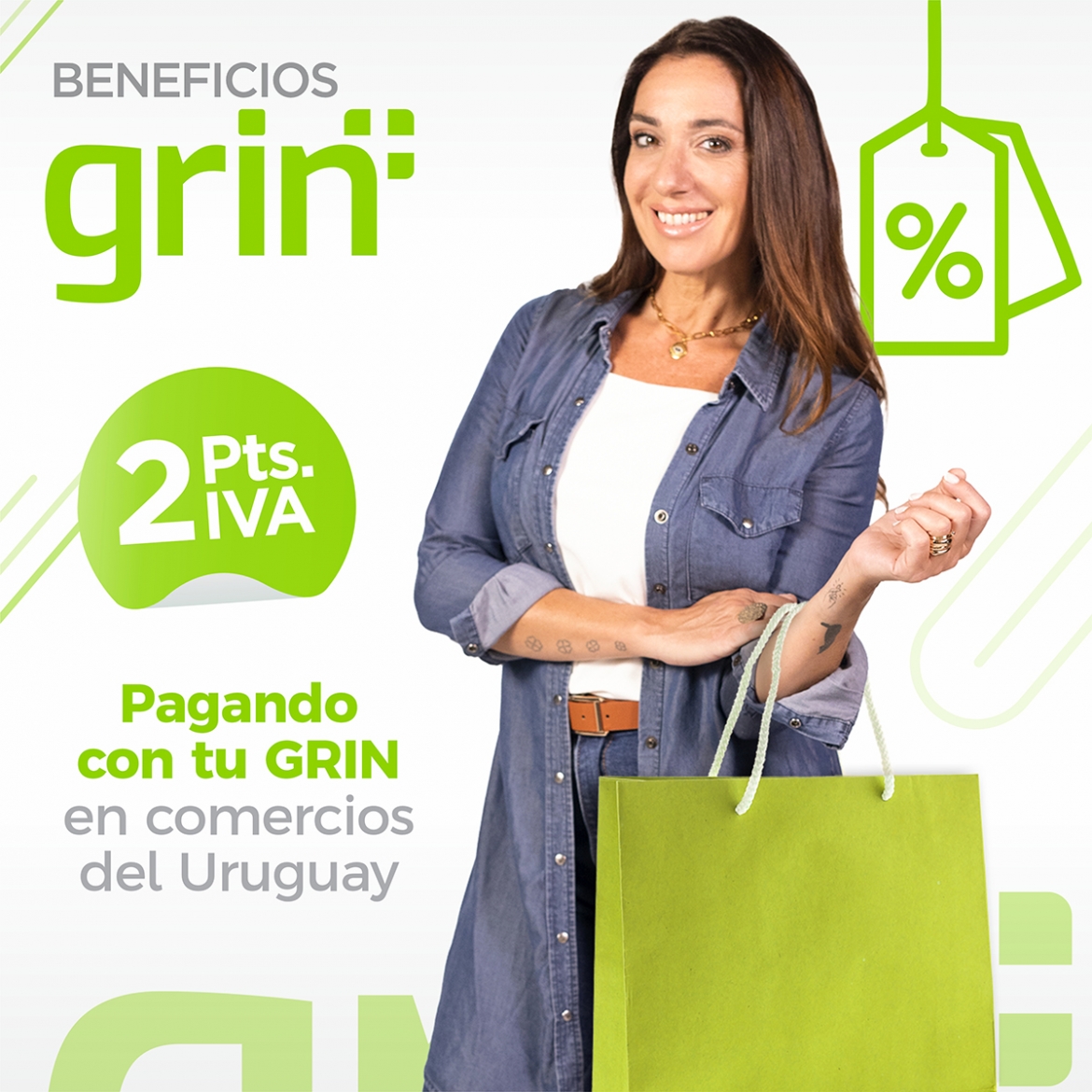 Pagando con tu Grin, ¡ahorrarás 2 puntos de IVA en los comercios de Uruguay!